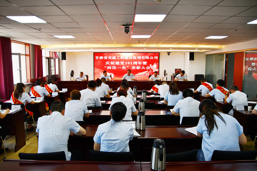 6月30日,甘肅省交通工程建設監(jiān)理有限責任公司召開慶祝建黨101周年暨“兩優(yōu)一先”表彰大會。交通監(jiān)理公司領導班子成員,機關及子公司全體黨員、中層干部,受表彰的先進集體和優(yōu)秀個人代表共計30余人在主會場參加表彰大會,各項目機構在分會場參會。會議由交通監(jiān)理公司黨委副書記、總經(jīng)理丁峰主持。
