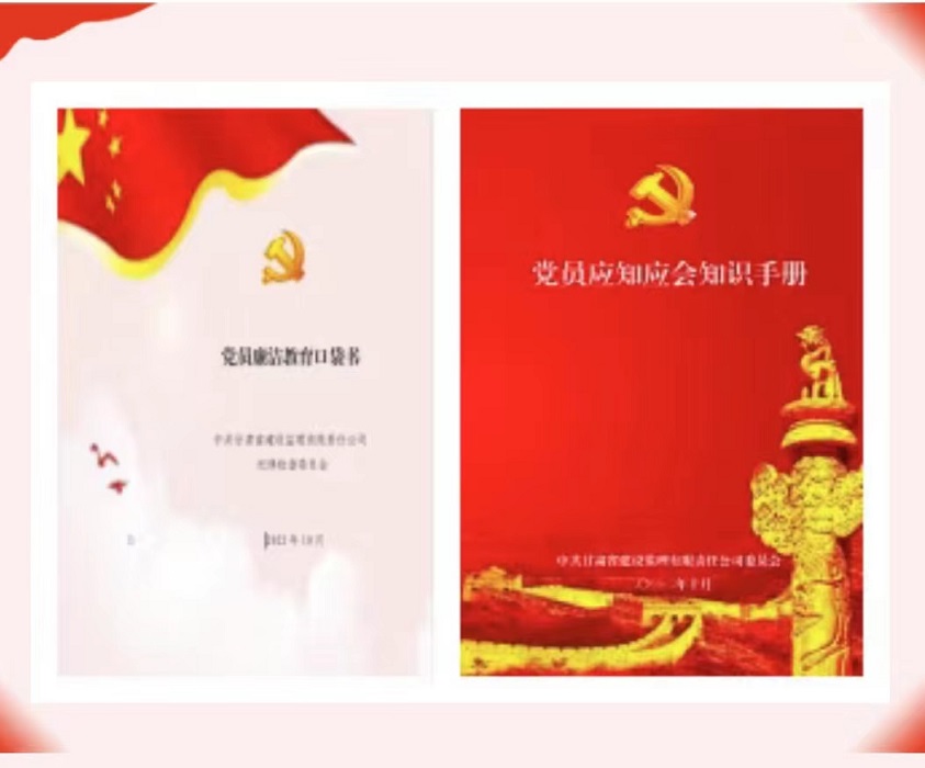 活動中,建設(shè)監(jiān)理公司黨委還為黨員精心制作了《黨員廉潔教育口袋書》及《黨員應(yīng)知應(yīng)會知識手冊》,篩選出黨紀黨規(guī)、黨建常識、名言警句、家風家教、廉潔從業(yè)等各方面的常用知識,方便黨員學習使用。此次系列黨建活動不但拓展了黨員干部職工的學習途徑,豐富了黨建宣傳形式,更有助于進一步提升黨員的政治素質(zhì)和對黨建工作的認知,凝聚廉政廉潔、風清氣正的思想共識。