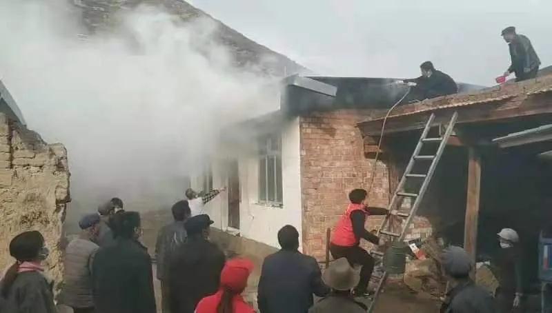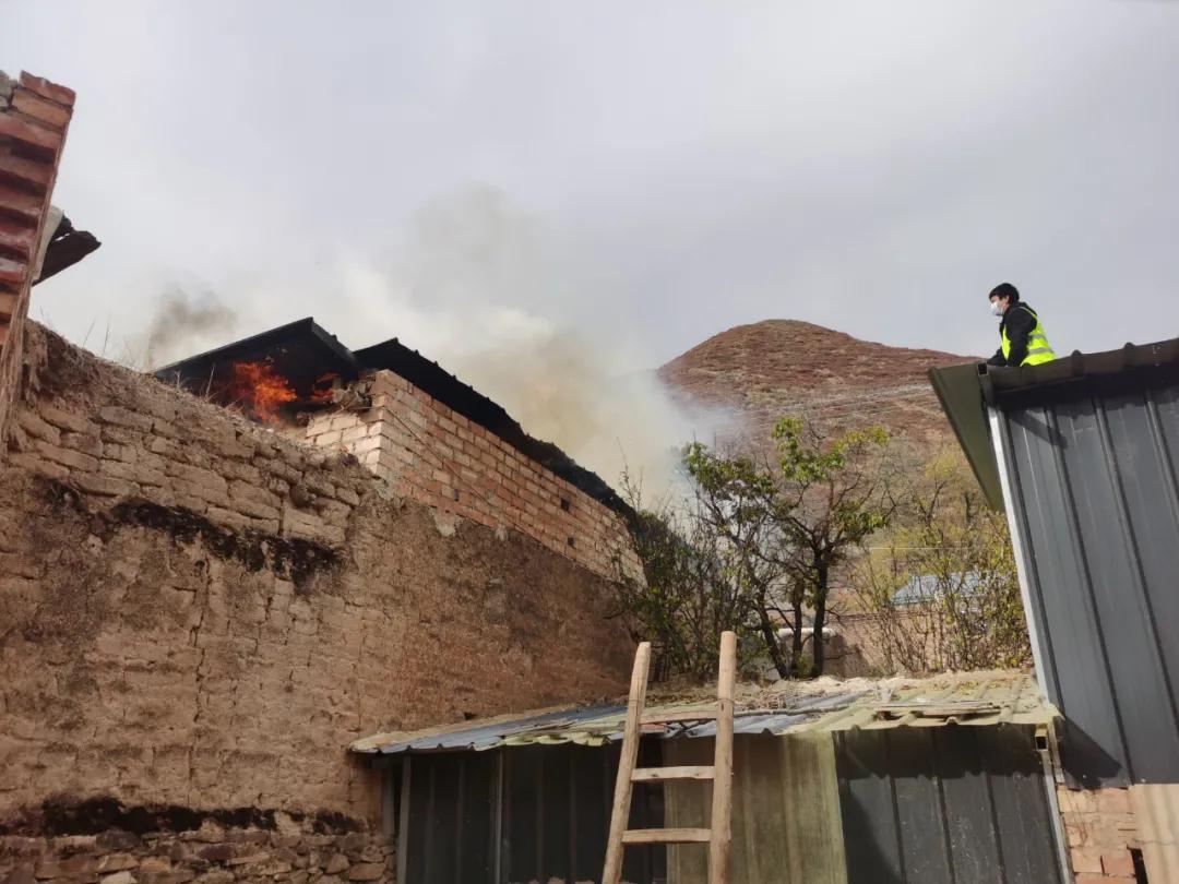 10月30日下午3點,交通監(jiān)理公司負責(zé)幫扶的臨潭縣洮濱鎮(zhèn)馬旦溝村一戶村民家中突然冒出滾滾濃煙,火光在濃煙中忽隱忽現(xiàn)。著火是一座磚木結(jié)構(gòu)彩鋼屋頂?shù)男路?,火從屋頂燒起,越燒越旺。著火的房屋旁邊堆放著多年的老柴火,干燥異常,一絲火星就能點燃,而與著火點緊鄰著的就是布局緊密的鄉(xiāng)親們的房屋,再往外圍則緊接著山林,如果火勢蔓延,后果將不堪設(shè)想。