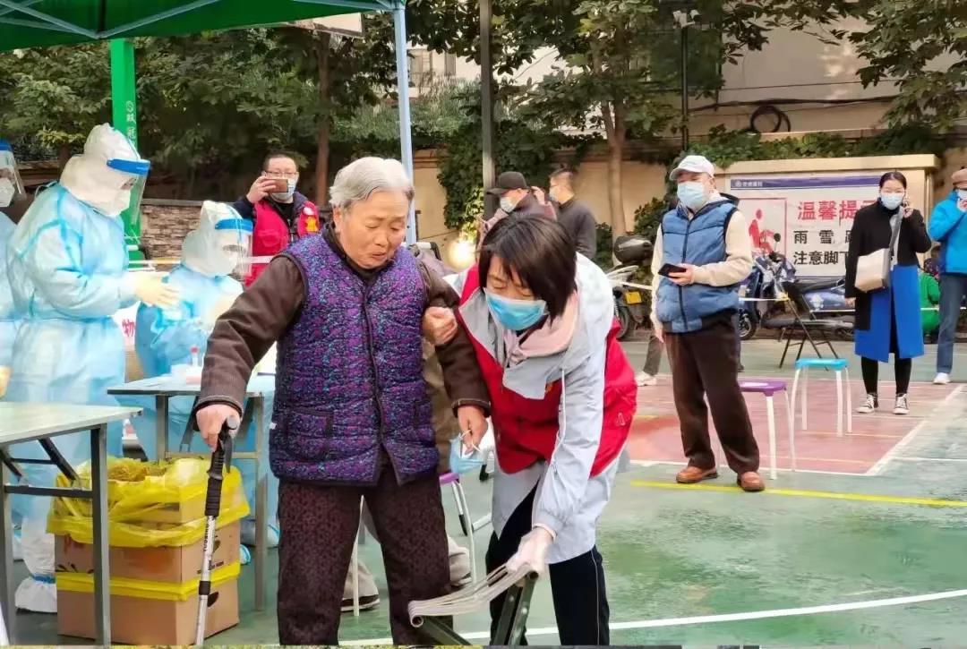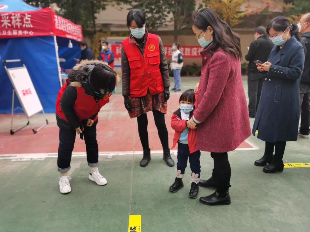 號令一出,不到半個小時時間,300多人的志愿隊伍已組建就緒。當(dāng)天下午,第一批志愿者隊伍,統(tǒng)一身穿紅馬甲,佩戴口罩,迅速奔赴南關(guān)夜市、伊真大廈、五泉街道、外國語中學(xué)等多個檢測點開展志愿服務(wù)。而女志愿服務(wù)者則更成為了深秋季節(jié)疫情防控一線最靚麗的一道風(fēng)景?!澳?,請?zhí)嵩绱蜷_微信健康出行碼”“請大家不要扎堆聚集,按照1米線要求,有序排隊”“請黃碼人員、老人、孕婦和小孩走綠色通道”……一聲聲溫馨提示,一次次貼心攙扶,都是她們最溫情的守護。