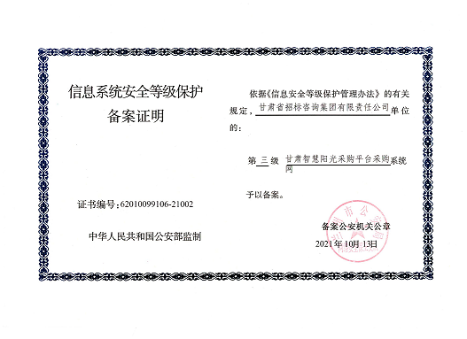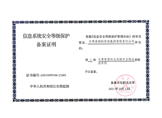 近日,由招標(biāo)咨詢集團(tuán)負(fù)責(zé)開(kāi)發(fā)建設(shè)的甘肅智慧陽(yáng)光采購(gòu)平臺(tái)系統(tǒng),以及甘肅智慧陽(yáng)光采購(gòu)平臺(tái)采購(gòu)網(wǎng)系統(tǒng)、大數(shù)據(jù)監(jiān)管系統(tǒng)、招標(biāo)系統(tǒng)、保證金系統(tǒng)、專(zhuān)家管理系統(tǒng)通過(guò)國(guó)家三級(jí)等保認(rèn)證,系統(tǒng)管理安全能力獲得業(yè)界最高標(biāo)準(zhǔn)。