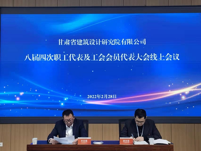 2月28日,甘肅省建筑設計研究院有限公司以視頻會議形式召開八屆四次職工代表大會。董事長米宏圖作了題為《深化改革創(chuàng)新 聚力提質增效 以嶄新業(yè)績譜寫高質量發(fā)展新篇章》的工作報告。建筑設計院領導班子成員及職工代表、工會會員代表147人分別通過PC端和移動端參加會議,17名特邀代表列席會議。會議由黨委書記李向軍主持。
