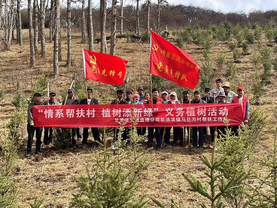 為積極響應(yīng)習(xí)近平總書(shū)記“全社會(huì)都做生態(tài)文明建設(shè)的實(shí)踐者、推動(dòng)者,讓祖國(guó)天更藍(lán)、山更綠、水更清、生態(tài)環(huán)境更美好”的號(hào)召,以打造“五無(wú)甘南”,創(chuàng)建“十有家園”為目標(biāo),加快推進(jìn)鄉(xiāng)村振興戰(zhàn)略實(shí)施,共建生態(tài)宜居宜業(yè)的美麗鄉(xiāng)村,近日,甘肅省交通工程建設(shè)監(jiān)理有限公司駐臨潭縣洮濱鎮(zhèn)馬旦溝村幫扶工作隊(duì)積極發(fā)揮自身職能,協(xié)同包村干部、村“兩委”成員、駐村黨員、義務(wù)志愿者及群眾代表等開(kāi)展義務(wù)植樹(shù)活動(dòng)。