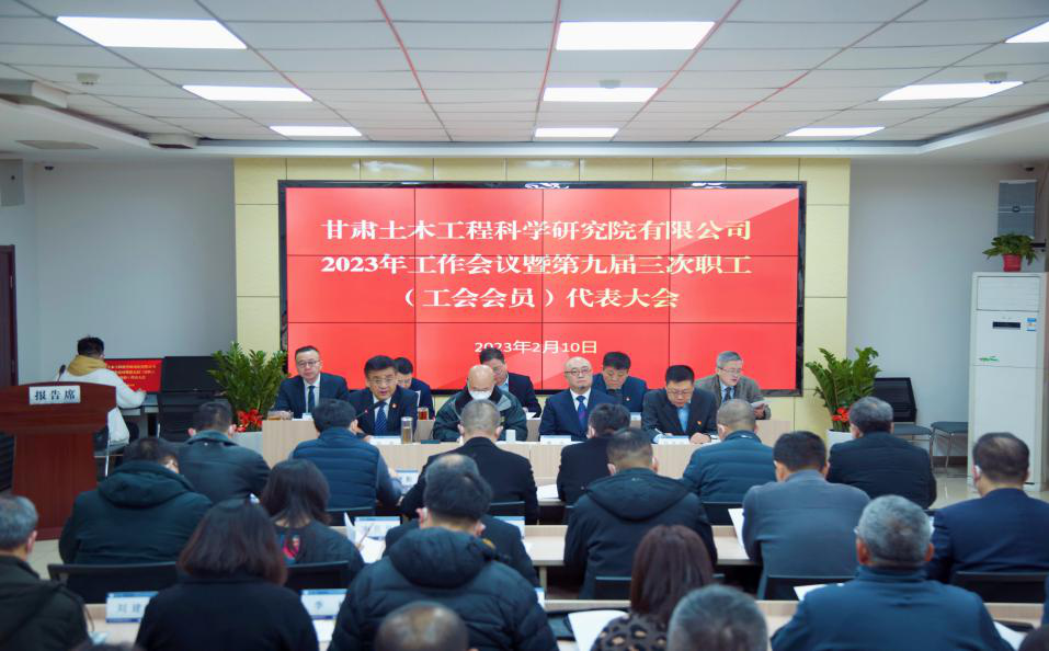 2月10日,甘肅土木工程科學(xué)研究院有限公司召開2023年工作會議暨第九屆三次職工(工會會員)代表大會,集團公司黨委委員、副總經(jīng)理梁建平到會指導(dǎo)。土木工程院董事長曹慶作了題為《蓄力增勢、提質(zhì)增效,主動作為、勇毅前行,奮力跑出高質(zhì)量發(fā)展的加速度》的工作報告,黨委副書記、監(jiān)事會主席、工會主席張磊作了題為《勇毅前行創(chuàng)佳績,踔厲奮發(fā)譜新篇,以黨的二十大精神推動工會工作高質(zhì)量發(fā)展》的工會工作報告、工會經(jīng)費收支情況報告及2022年度財務(wù)工作報告。會上對2022年度先進集體、優(yōu)秀管理者、先進工作者及優(yōu)秀科技工作者進行了表彰。職工代表、列席代表等64人參加。