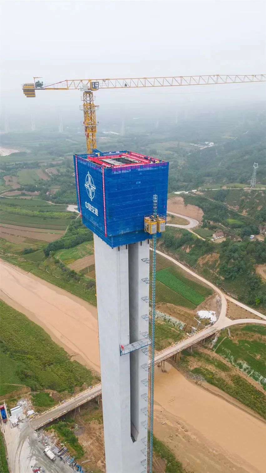馬蓮河特大橋橋梁位于合水縣西華池鎮(zhèn)與何家畔鎮(zhèn)交接處,跨越馬蓮河河谷,總長(zhǎng)2208m,主橋橋長(zhǎng)1400m,橋?qū)?5.5m。溝谷最低處至橋面最大高差為196m,16#主墩墩身最大高度178米,墩身共計(jì)使用鋼筋2258.721噸,C50混凝土11431.9m3。該橋系目前國(guó)內(nèi)黃土地區(qū)在建跨度最大、墩柱最高、聯(lián)跨最長(zhǎng)的矮塔斜拉橋。