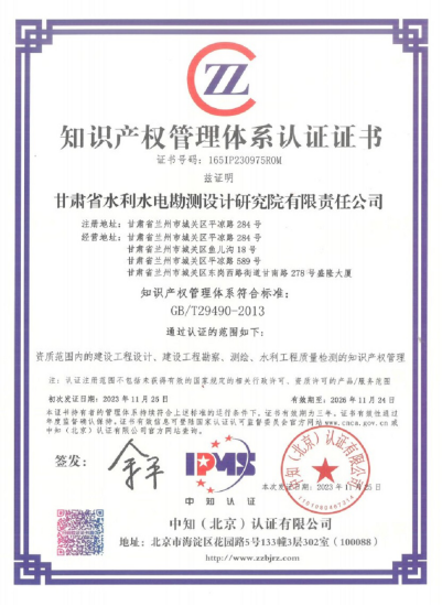 近日,省水電設(shè)計(jì)院順利通過(guò)《企業(yè)知識(shí)產(chǎn)權(quán)管理規(guī)范》(國(guó)家標(biāo)準(zhǔn)GB/T 29490-2013)的認(rèn)證評(píng)審工作,取得《知識(shí)產(chǎn)權(quán)管理體系認(rèn)證證書(shū)》,標(biāo)志著在知識(shí)產(chǎn)權(quán)創(chuàng)造、運(yùn)用、管理和保護(hù)方面邁上新臺(tái)階。
