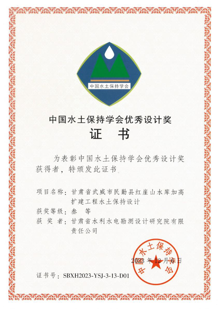 據(jù)悉,這是繼《甘肅省引洮供水一期工程水土保持設(shè)計(jì)》獲第三屆中國(guó)水土保持學(xué)術(shù)大會(huì)優(yōu)秀設(shè)計(jì)二等獎(jiǎng)后,再次喜獲此獎(jiǎng)項(xiàng)。中國(guó)水土保持學(xué)術(shù)大會(huì)制度自2018年建立以來(lái),中國(guó)水土保持學(xué)會(huì)搭建了我國(guó)水土保持領(lǐng)域規(guī)模最大、水平最高的學(xué)術(shù)交流平臺(tái),現(xiàn)已成為中國(guó)水土保持學(xué)術(shù)交流的重要品牌。中國(guó)水土保持學(xué)會(huì)優(yōu)秀設(shè)計(jì)獎(jiǎng)每?jī)赡暝u(píng)選一次,主要獎(jiǎng)勵(lì)我國(guó)在水土保持規(guī)劃與設(shè)計(jì)領(lǐng)域中技術(shù)先進(jìn)、成效顯著、理念創(chuàng)新的項(xiàng)目成果。