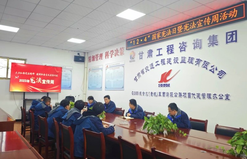 組織機關全體干部職工集體觀看《法護一生》宣傳片。各項目機構緊密結合項目實際,通過擺放宣傳展板、發(fā)放宣傳手冊、開展憲法宣講等宣傳形式,向干部職工宣傳憲法及與群眾生產(chǎn)生活密切相關的法律法規(guī)知識。