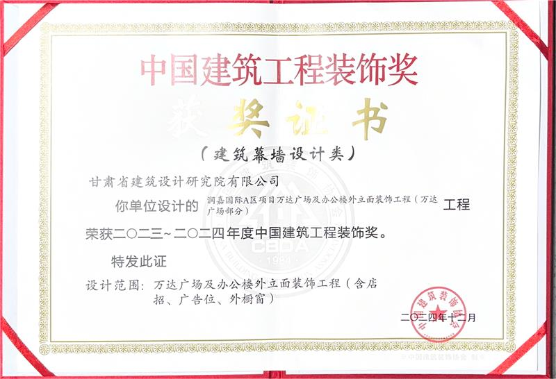 近日,中國建筑裝飾協(xié)會(huì)公布了2023-2024年度“中國建筑工程裝飾獎(jiǎng)”獲獎(jiǎng)名單,省建筑設(shè)計(jì)院承擔(dān)設(shè)計(jì)的“潤嘉國際A區(qū)項(xiàng)目萬達(dá)廣場及辦公樓外立面裝飾工程(萬達(dá)廣場部分)”榜上有名。