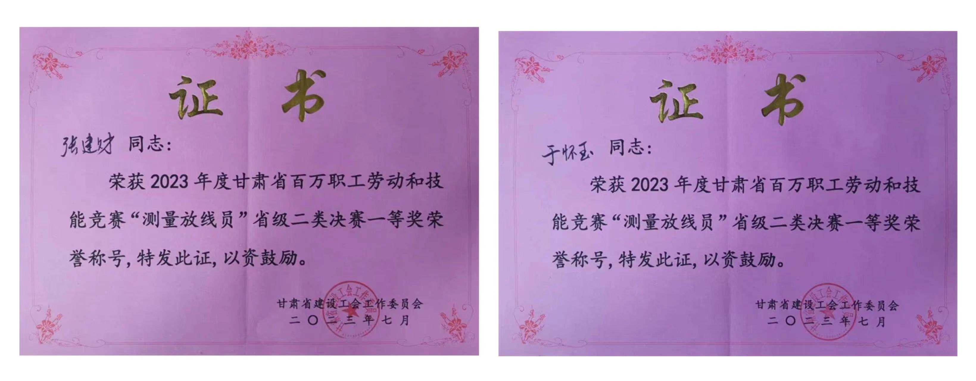 近日,從省建設(shè)工會“2023年度甘肅省百萬職工勞動和技能競賽”組委會傳來好消息,省建筑設(shè)計院選派的巖土技術(shù)中心、巖土工程公司張建財和于懷玉兩名同志,榮獲2023年度甘肅省百萬職工勞動和技能競賽“測量放線員”省級二類決賽一等獎榮譽(yù)稱號。