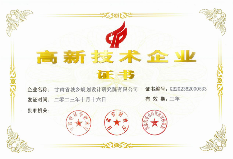近日,經(jīng)過嚴格的審批程序,省規(guī)劃設計院申報的國家高新技術企業(yè)最終通過認定并獲得由省科學技術廳、省財政廳和國家稅務總局甘肅省稅務局聯(lián)合頒發(fā)的“高新技術企業(yè)證書”(證書編號:GR202362000533)。